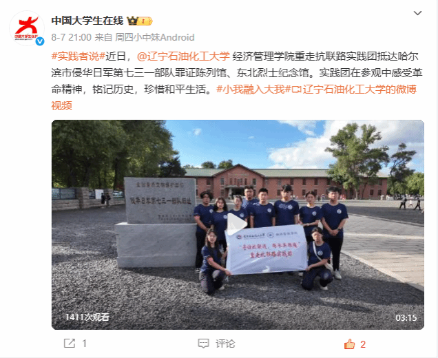 教育部中国大学生在线官方微博:经济管理学院重走抗联路实践团抵达哈尔滨市侵华日军第七三一部队罪证陈列馆、东北烈士纪念馆